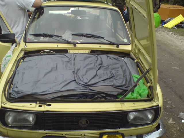 Az autónk egy 1983as Skoda 120L Bözske névre hallgat. Még a szép krómlökhárítóval szerelve. Gyári szív mozgatja a kicsi kocsit (38KW/52LE) és 4 sebességes váltóval van szerelve.. Én és a barátaim közösen vettük, egy idős úrtól 83 000 km-rel. Nagyon keveset és megkímélve használták, telekre jártak vele nyár elején és csak nyár végén jöttek vele haza. Megláttuk a hirdetését és első látásra beleszerettünk. 4éve volt a kasznija kilakatolva és újrafényezve. Mikor elmentünk megnézni, nagyon rendbe volt de persze volt mit javítani rajta. A hazafelé út érdekes volt vele, útközben eltűnt az alapjárata, és dönteni kellett fék vagy gáz, hogy ne fulladjon le. Érdekes volt a hazajövetel a körúton. De végül hazaértünk és megkezdtük a fejújítását. Eredeti állapotában akartuk megtartani a külsejét, nem sok Skoda van ami eredeti pompájában tündököl.