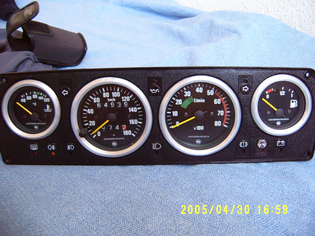 | Képek | Ez egy sima GLS műszerfal, amit egy kicsit megpöcköltem. Rövid leírás: Cucc darabjaira szétszed, megmos, műanyagápolóval lekezel. Utána az órák "konzerveit" óvatosan leszedtem, az üvegeket elmostam, a gumi tömítéseket gumiápolóval lekentem. Az órakeretekről sniccerrel leszedtem azt a fekete habos műanyagot (ez elég hosszú meló), utána finom papírral megcsiszoltam őket. A mutatókat matt modellfestékkel festettem. Az összerakásnál vigyázni kell, amikor fogóval nyomjuk össze a peremet, a külső részre tegyünk rongyot, hogy ne nyomódjon meg!